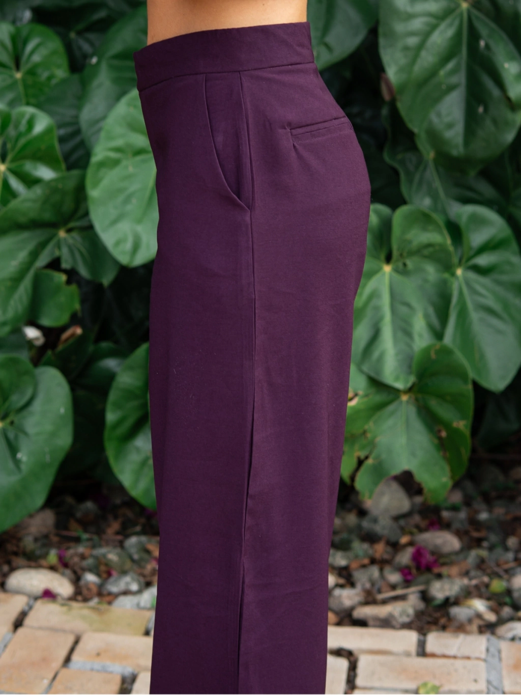 “A Calça Pantalona”, feita em alfaiataria no tom uva, tem o caimento mais fluido e reto. A peça tem fecho interno por ganchos e passa cinto. Os bolsos faca nas laterais também deixam o looks mais versátil.